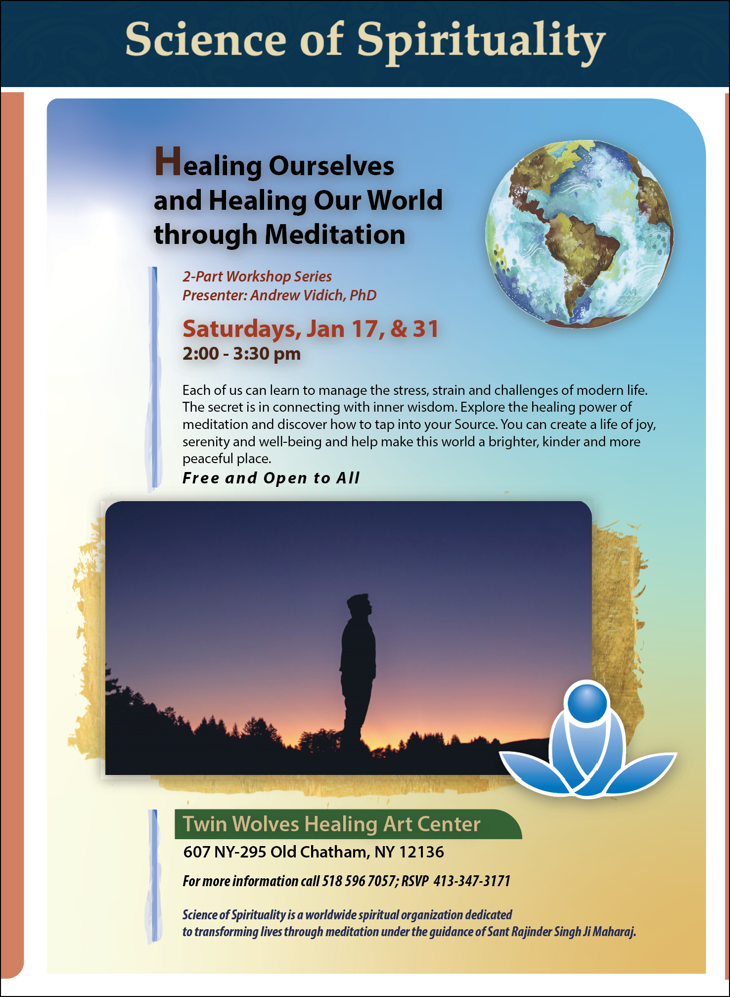 Back to All Events Healing the World Through Meditation Saturday, January 31, 2026 2:00 PM 3:30 PM Google Calendar ICS